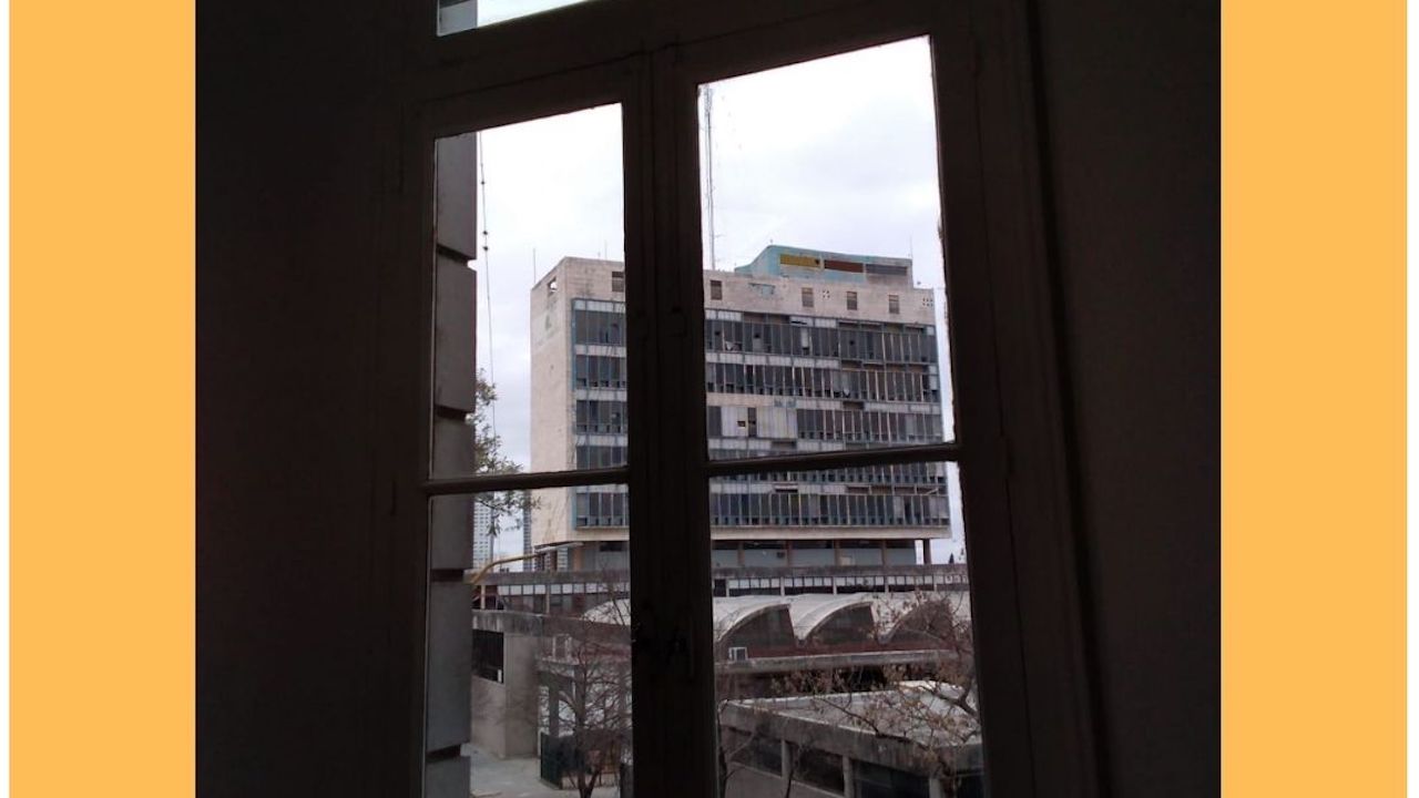 “Spending a few weeks in Argentina, in front of my desk, a Post Office building. A nice futuristic architectural concept, degraded by its construction materials, support of a communication antenna, appropriated by pigeons as a dovecote: a hybrid object.”