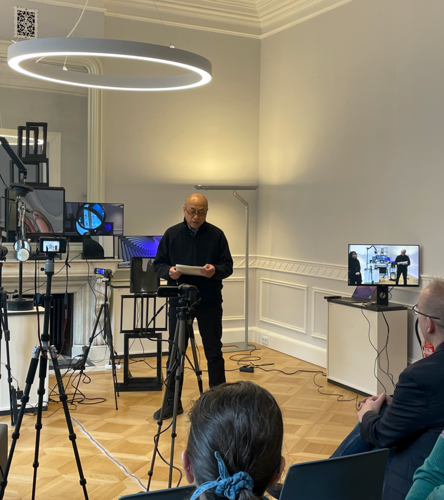 During the live performance of the installation and the following discussion with c:o/re Senior Fellow Masahiko Hara on “Fluctonomous Emergence”, the audience was able to experience how machines react to the unpredictable, unknown behaviour of materials, e.g. changing incidence of light. This is where Masahiko Hara’s research comes in, focusing on the integration of art strategies into science and technology based on the emergent functions of autonomous systems that exhibit fluctuant behaviour.